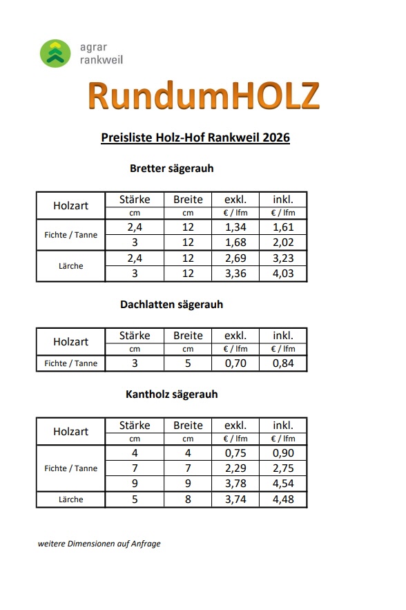Sie sind hier: Startseite » SHOP Dachlatten Holzart Größe lfm Preis Fichte sägerauh 3,0 x 5,0 cm 1 0,84 Euro Preisliste Dachlatten sägerauh Bretter, roh Holzbriketts