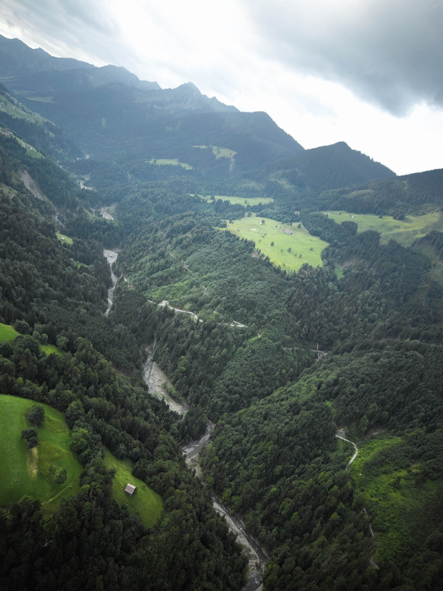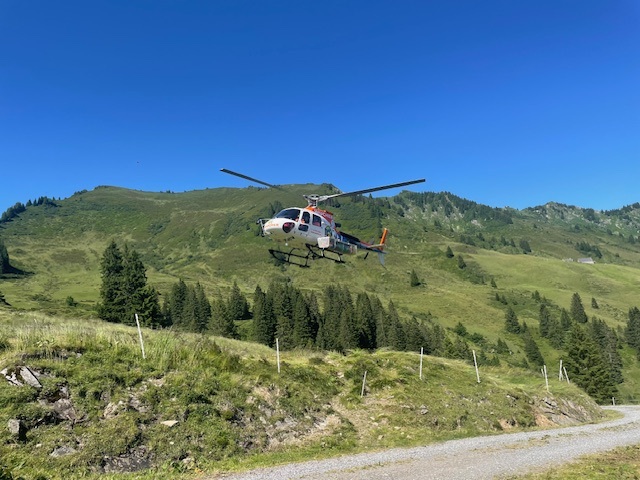 Mit dem Helikopter ober das Laternserteil Richtung Furkapass zeigt das Ausmass der großen, herausfordender Bewirtschaftungt.